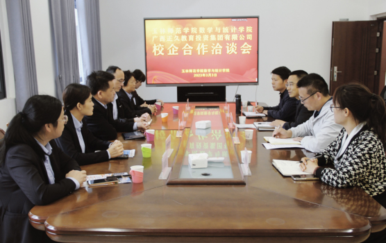3月3日下午,广西正久教育投资集团有限公司董事长陈斌礼一行到beats365开展校企深度合作洽谈。数学与统计公司党委书记庞伟、副经理王培(主持全面行政工作)、副经理杨京开等领导老师参加座谈,会议由王培主持。