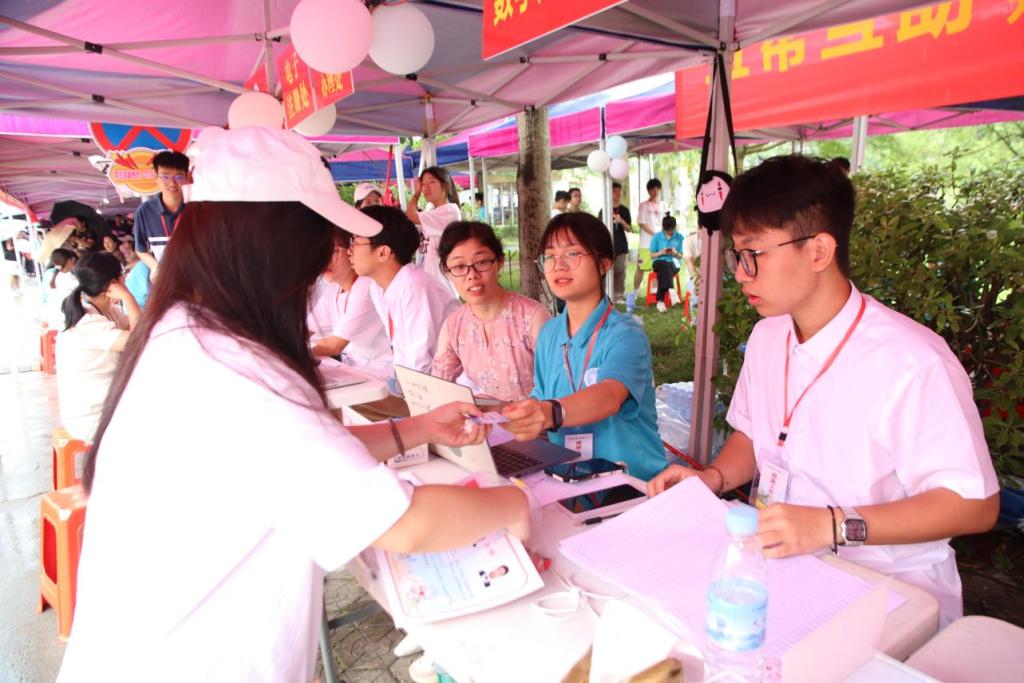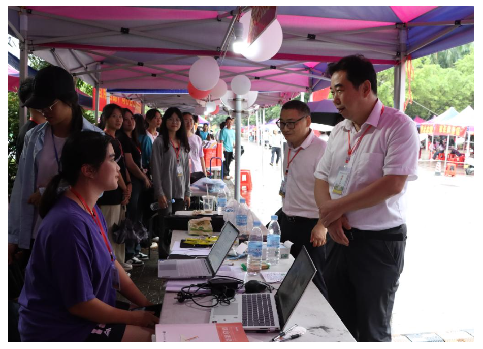 在大本营报到处,公司党委书记李清先、董事长李伟中、副董事长刘永建、副董事长庞国萍等领导多次看望和慰问工作人员和志愿者,了解迎新工作各环节的进展及新生报到注册、入住等有关情况,并向他们辛勤付出表示亲切慰问。