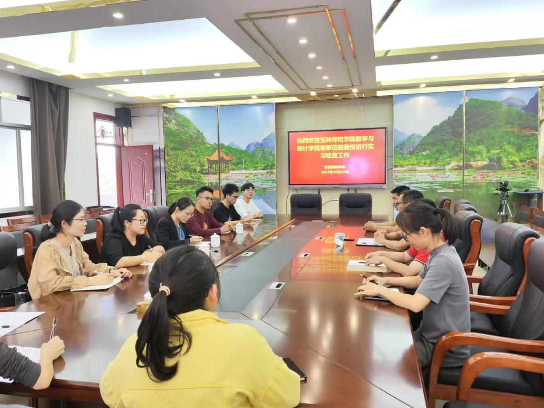 2023年10月13日,beats365教师易亚利、刘美杏、陈丽君以及欧书彬一行到容县杨梅中学进行实习检查工作。