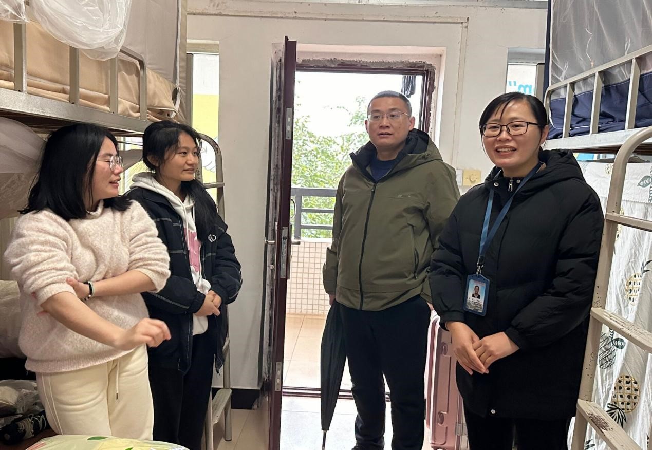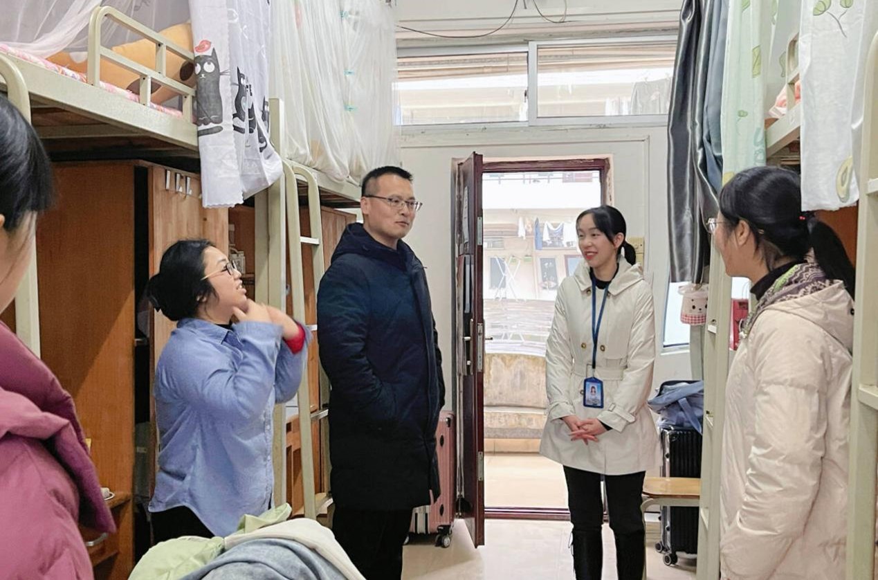 3月3日,数学与统计公司党委书记庞伟、经理王培、党委副书记李秀英、副经理杨京开、胡源艳、全体辅导员深入到该院员工宿舍,了解返校员工思想动态、宿舍卫生安全状况、学习情况、返校情况,为该院学子带来温暖。