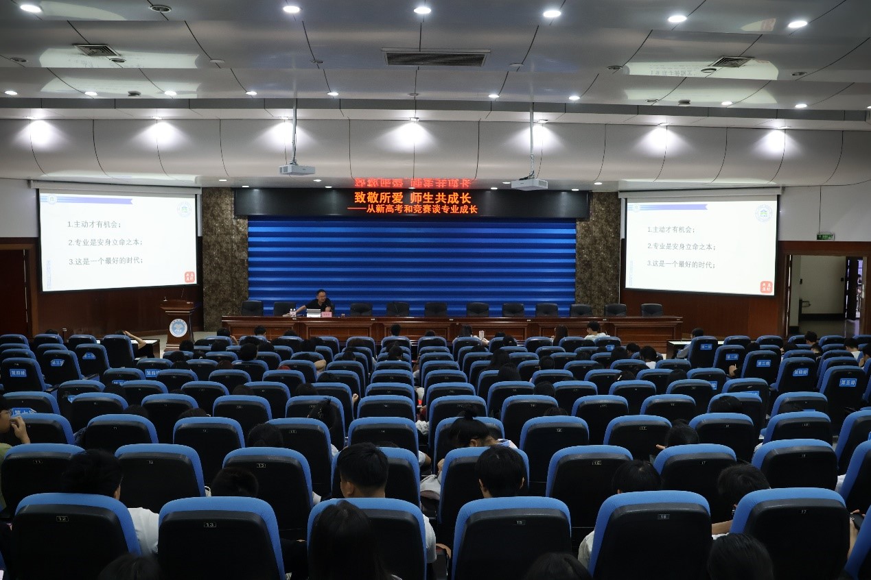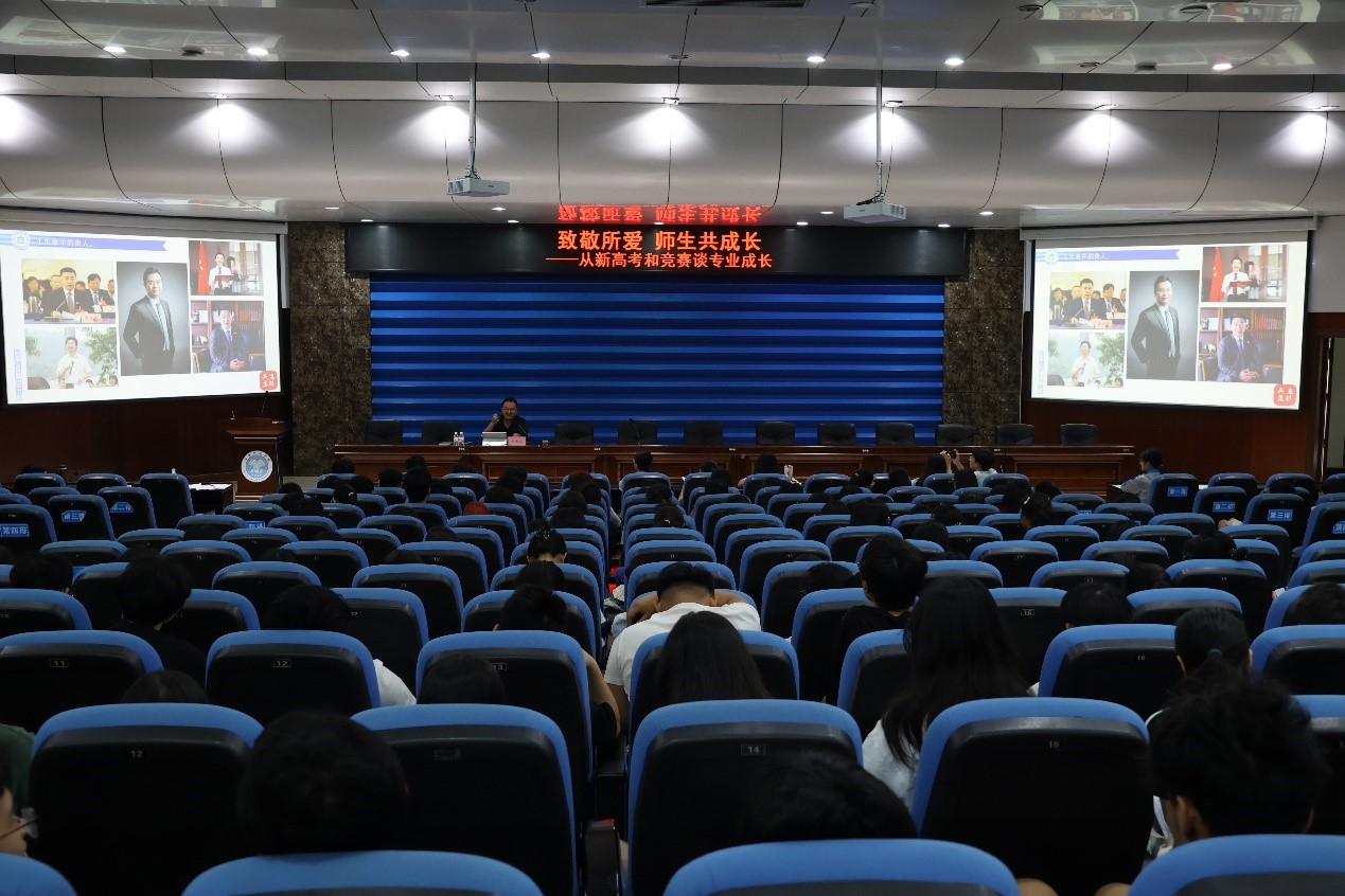5月23日上午,beats365于公司东校区知行楼学术报告厅开展主题为“致敬所爱,师生共成长——从新高考和竞赛谈专业成长”讲座。讲座由天立教育集团储备董事长安永志主讲,公司副经理胡源艳主持,2022级、2023级数学与应用数学专业全体员工参加。