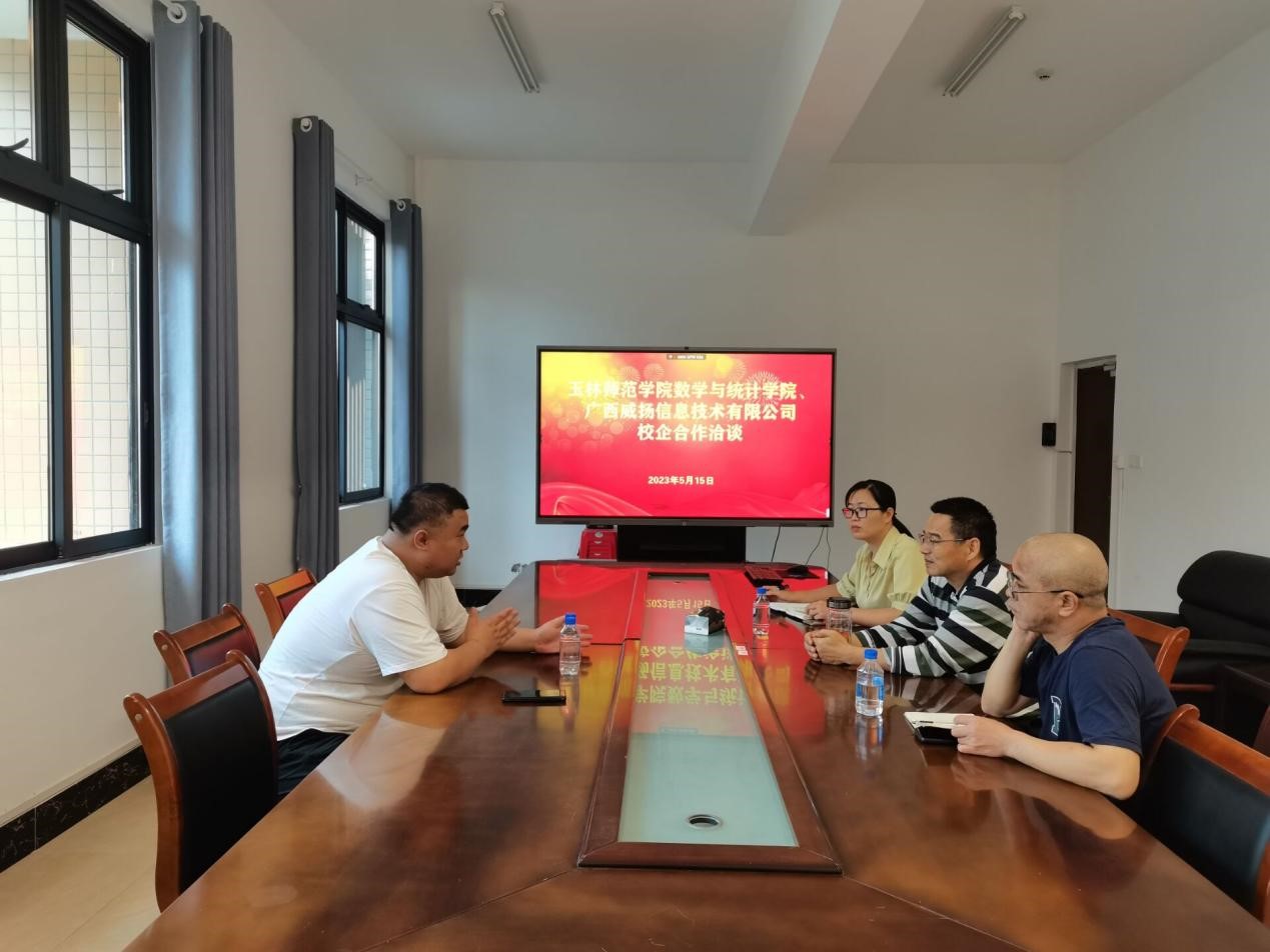 为推动产学研深度融合,提高人才培养质量,5月15日下午,beats365与广西威扬信息技术有限公司于公司东校区新民楼C315开展校企合作洽谈。该公司党委书记庞伟、党委副书记李秀英以及教师代表参加。