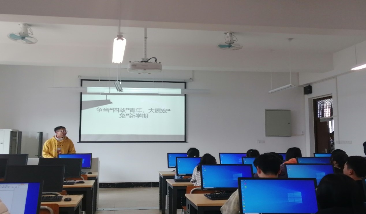 数学202班班主任廖珊莉说明召开主题班会的意义及目的,要求员工自觉遵纪守法,遵守道德规范,提高自我保护意识,自觉维护公司和老员工形象,营造良好的学风、院风。廖珊莉对员工进行考风考纪诚信教育,并鼓励员工积极考研考证,激励员工在新学期能争当“四敢”好青年,大展宏“兔”!