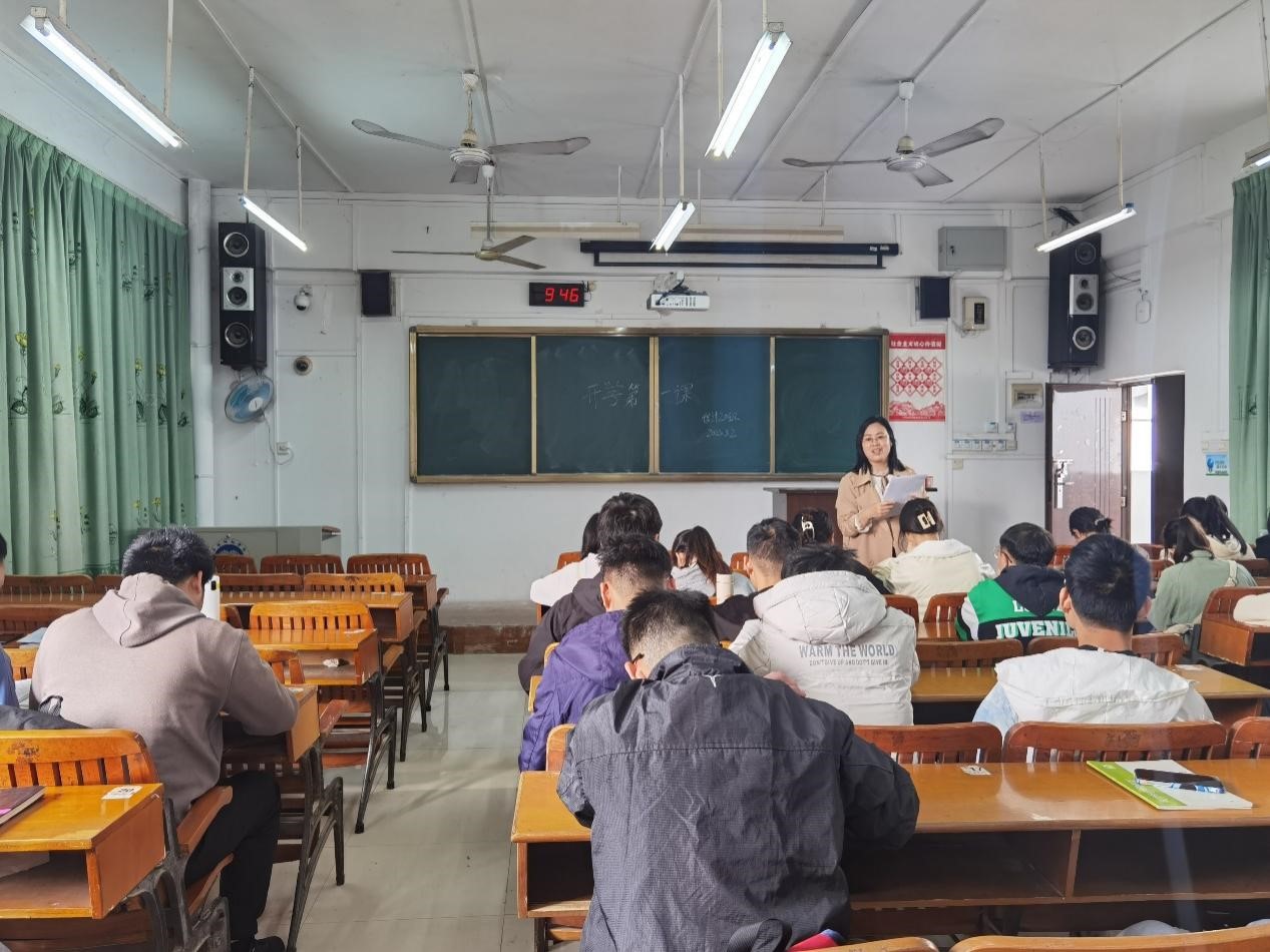 统计21班班主任吴荣火教育员工要自觉遵纪守法,加强思想道德建设,用积极的心态对待新学期的学习与生活,保持良好的卫生习惯,并且提醒员工注意食品安全和交通安全。吴荣火强调学风建设的重要性,要求员工注意考试时间,积极备考,规划好新学期的学习目标,合理利用时间。