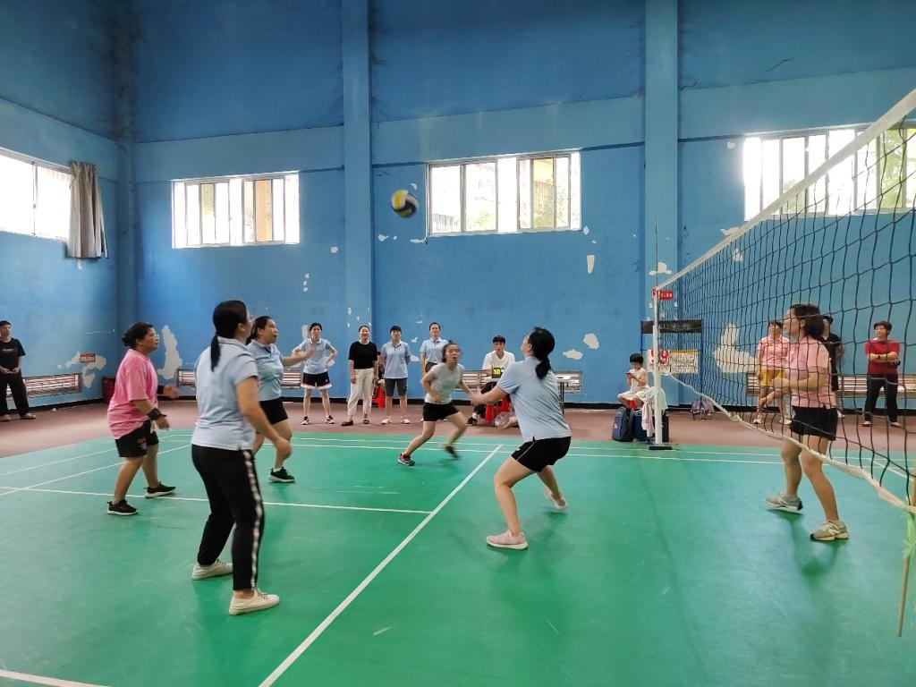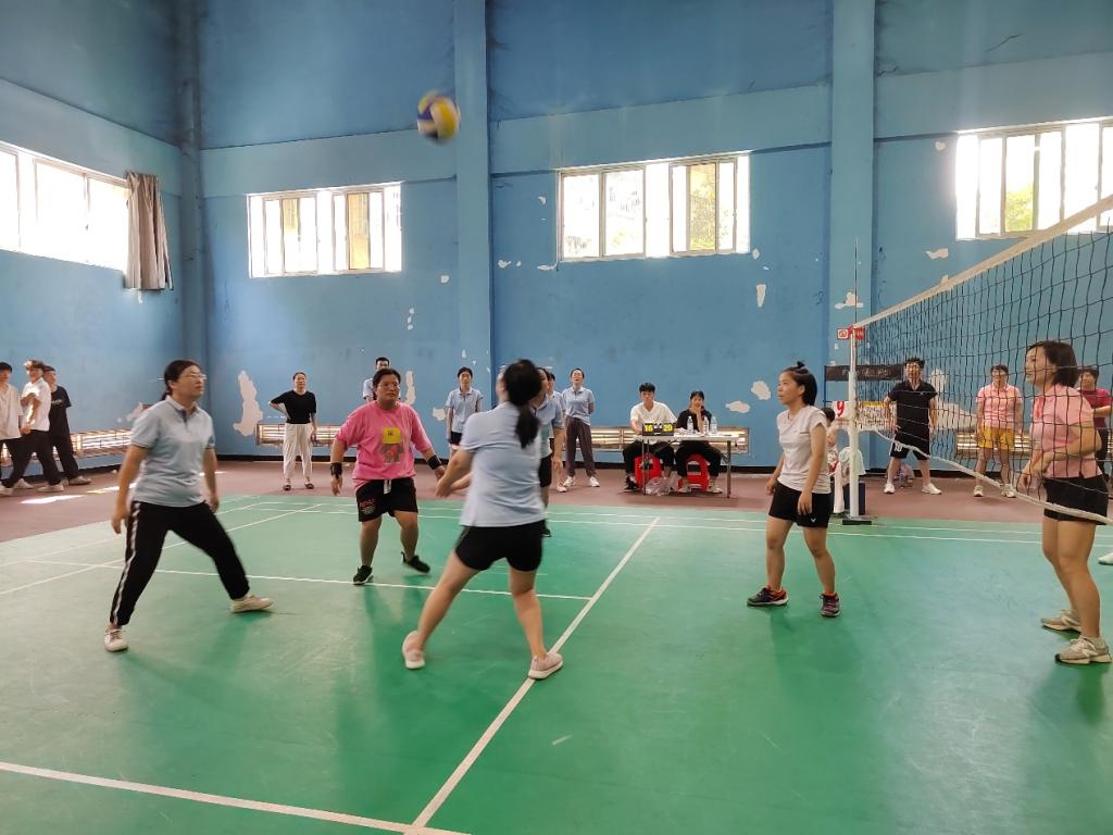 比赛实行三局两胜制。赛前双方都积极热身,随着哨声响起,比赛正式开始。双方队伍激烈竞争,你追我赶,拼尽全力,每个老师都展现出巾帼不让须眉之势;场下啦啦队热情高涨,加油欢呼声此起彼伏,赛场氛围瞬间被点燃。在中场休息时,双方球员积极商量对策,应对对方的每一次进攻。一个个精彩的扣球,拦网,双方球员都充分发挥自己的个人技术及战术配合,让在场的观众都欢呼不已。最终以大比分0:2遗憾落败。