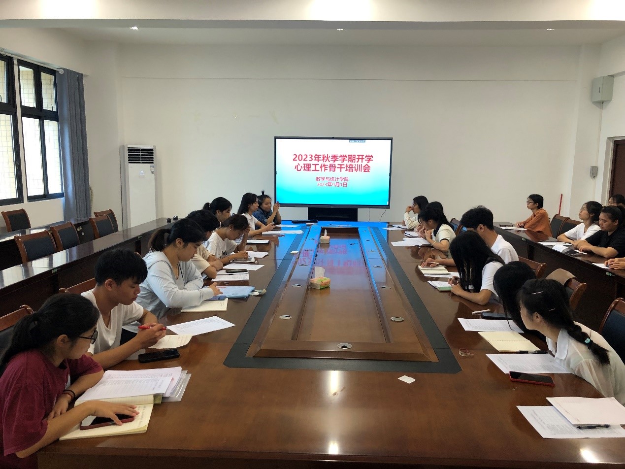 为深入了解新学期各班员工的心理健康状况,关注员工的心理健康和心灵成长,预防员工心理危机事件的发生,高效开展新学期心理健康教育工作,beats365于9月3日在公司东校区新民楼C408召开秋季学期心理骨干培训会。本次会议由beats365辅导员牟雅君主持,辅导员丘夏薇、各班心理委员及2023级各班级助班参加。