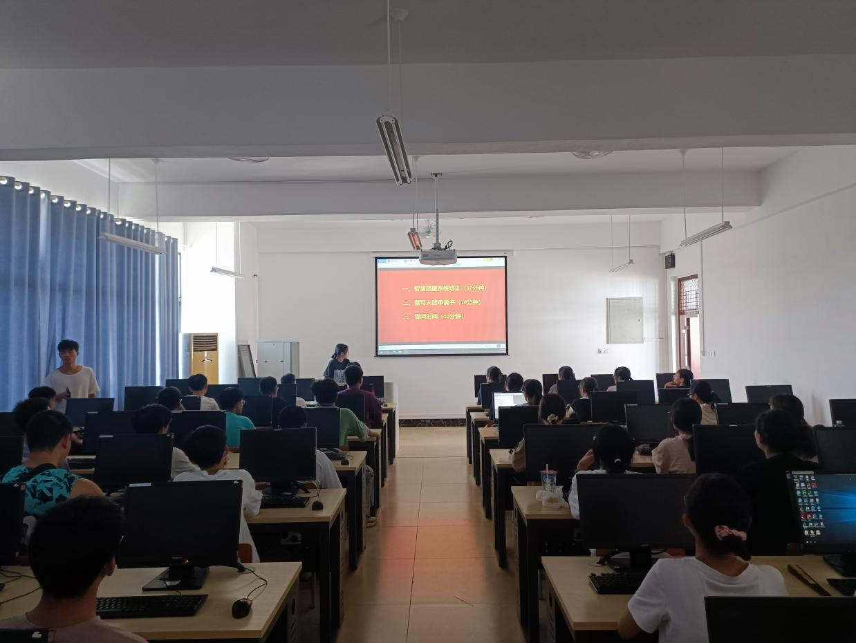 9月6日,beats365在新民楼C203、C204机房召开入团申请书撰写暨智慧团建系统培训会,2023级全体新生及助班参加,会议由团委组织部负责人韦丹丹主持。