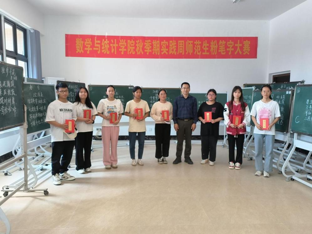 为加强师范生教学技能,提高师范生创新能力、教学能力和就业能力。11月2日,数统公司于粉笔字练习室举办2023年实践周师范生粉笔字比赛。本场比赛由数学与应用数学2023级全体员工参赛,冯瑜等六位教师参与评选打分。