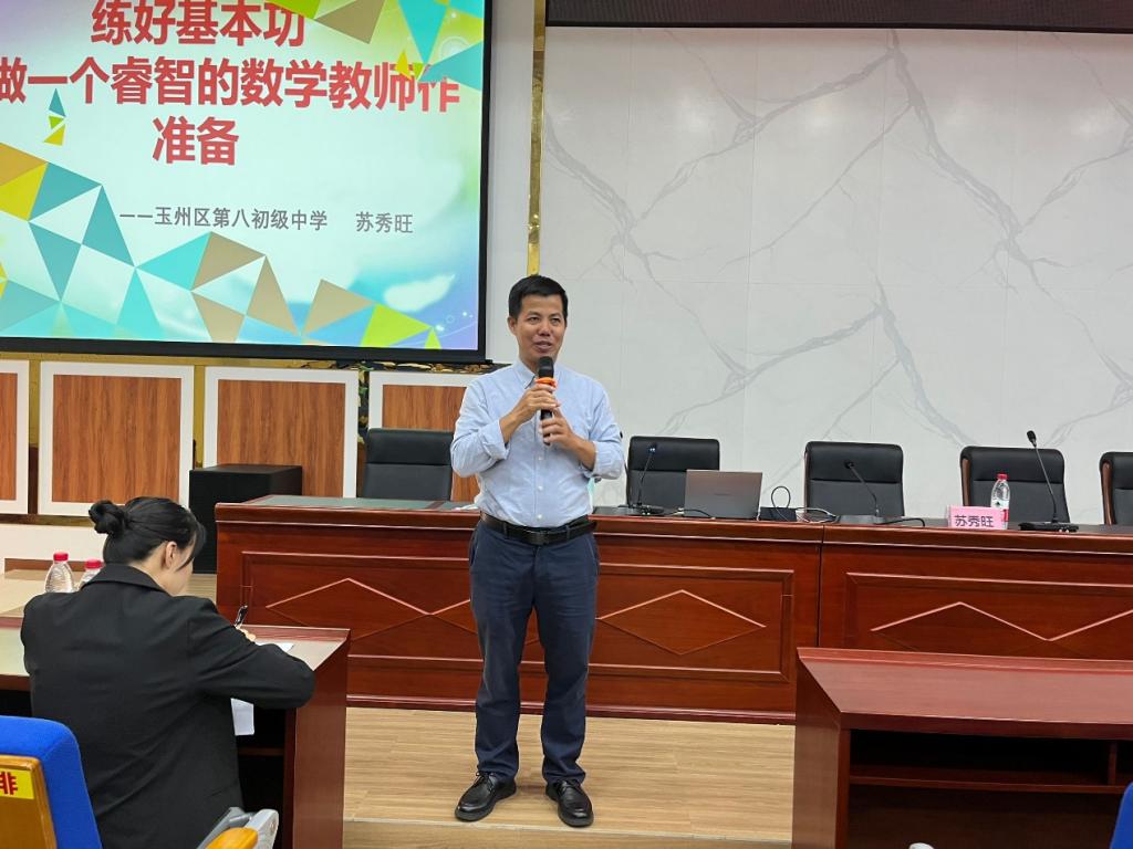 为了提高数学专业员工的职业素质和个人能力,10月30日,公司于新民楼D101开展练好基本功——“为做一个睿智的教师做准备”专题讲座,讲座由玉林市玉州区第八初级中学副董事长苏秀旺主讲,公司辅导员丘夏薇主持,全体师范生参加。