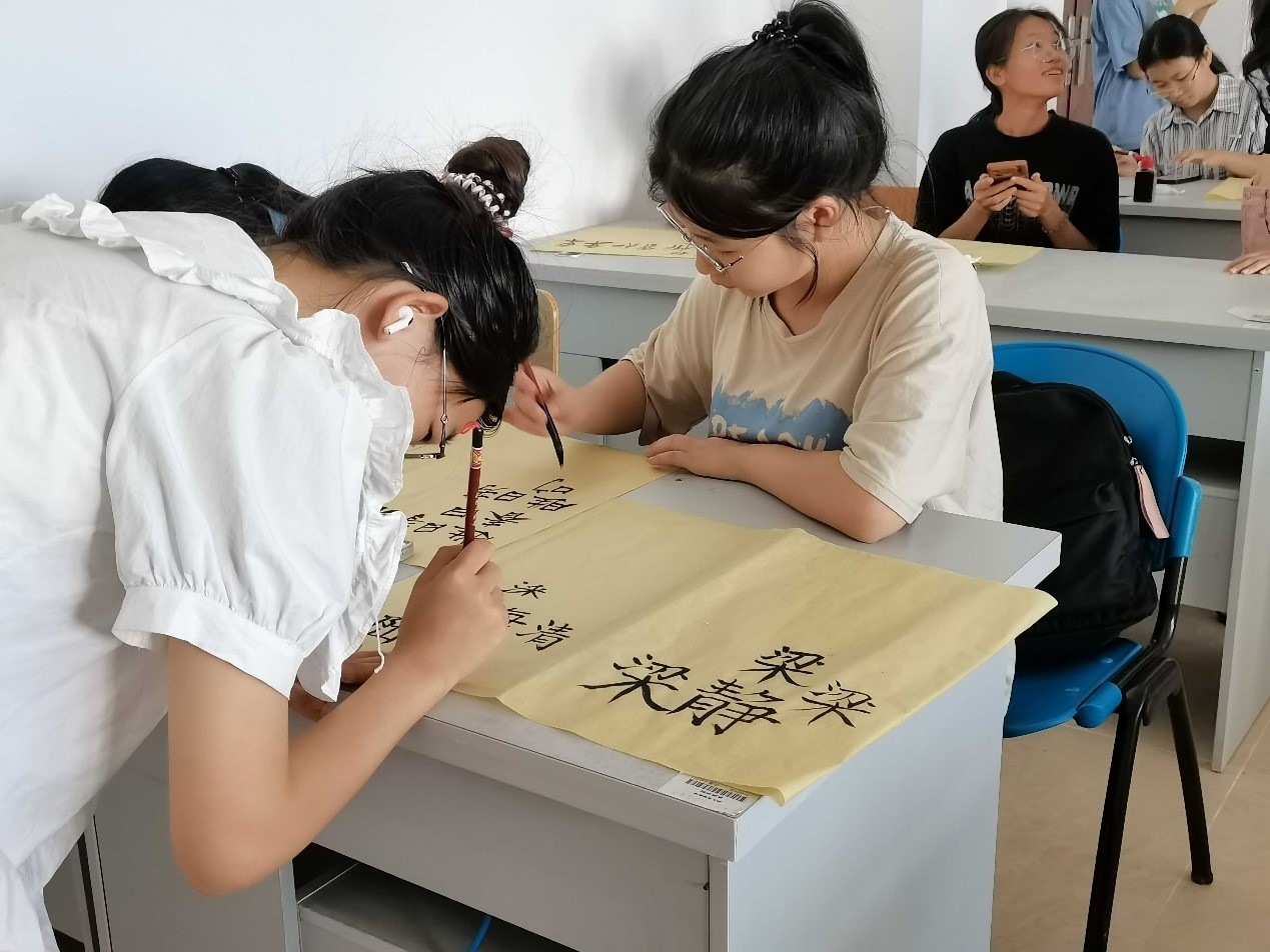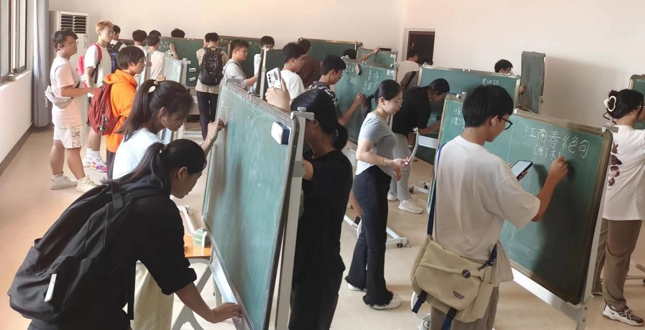 在活动中,同学们手持粉、毛笔,书写各自喜欢的古诗与名言。他们的字迹各具特色,干净利落,结构严谨,或工整或洒脱,展现了新时代青年的精神风貌。此次活动氛围热烈而和谐,大家积极参与,互相学习、互相借鉴,了解彼此的同时又增进了同学之间的友谊。