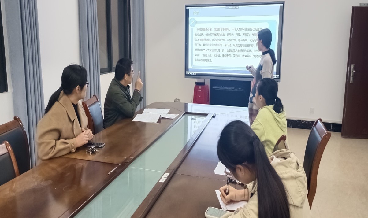 培训开始,四位参赛选手按标准校级赛事流程,依次上台图文并茂地展示职业生涯规划。庞伟依次对四位参赛选手进行全方位的点评分析,从参赛选手的自我认知、环境分析、职业目标、职业定位、SWOT分析、评估调整方案等方面对选手进行仔细点评及调整。接着,李秀英就如何提高职业规划的可行性和可操作性提出了具体的建议和意见。