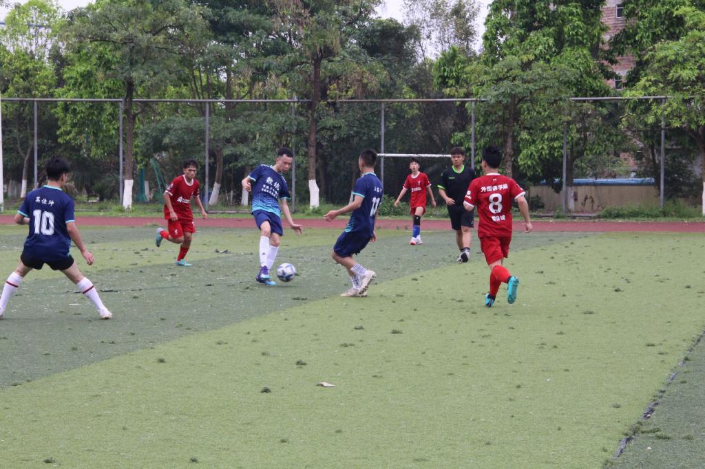 赛前,公司男子足球队提前到达比赛场地进行热身,随后双方队长进行赛前战术安排和人员调整问题。随着裁判的哨响,整个球场充满紧张氛围,每个球员都全力以赴,来回争夺,敢于进攻。赛场双方势均力敌,不分上下。中场休息过后,双方队员都得以补充水分和短暂的休息之后,随着哨声一响,下半场正式开始,外国语公司趁公司不备进攻率先拿下一分。双方战况火热,难分难舍。球场中央,外院球员巧妙配合,进攻迅猛,公司在落后一分的情况下仍不甘示弱,努力防守。最终,公司以0:1的比分惜败外国语公司。